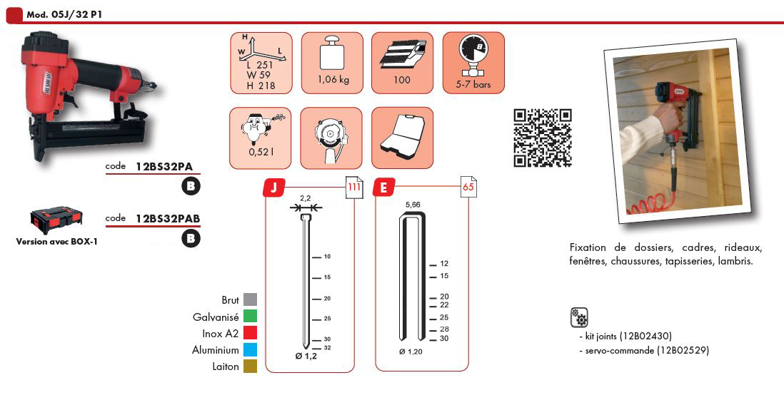 Agra-cloueur pneumatique ALSAFIX 05J/32 P1 pour pointes J et agrafes E de 10 à 32mm