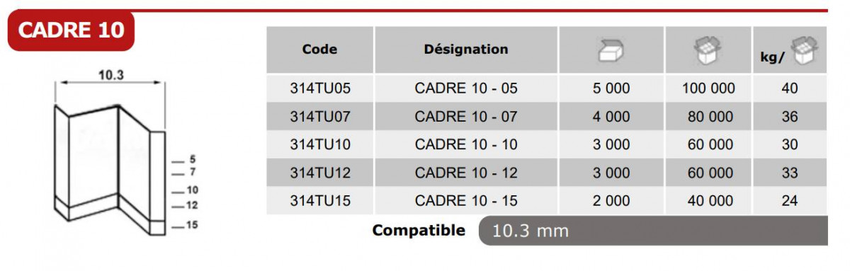 Les agrafes Cadres sont conçues spécifiquement pour assurer une fixation solide et précise des baguettes de cadre. Adaptées aussi bien aux professionnels de la fabrication de cadres qu’aux particuliers exigeants, elles permettent d’obtenir des assemblages fiables et propres. Utilisables avec de nombreuses agrafeuses compatibles, elles garantissent une pose rapide, durable et sans endommager le bois.