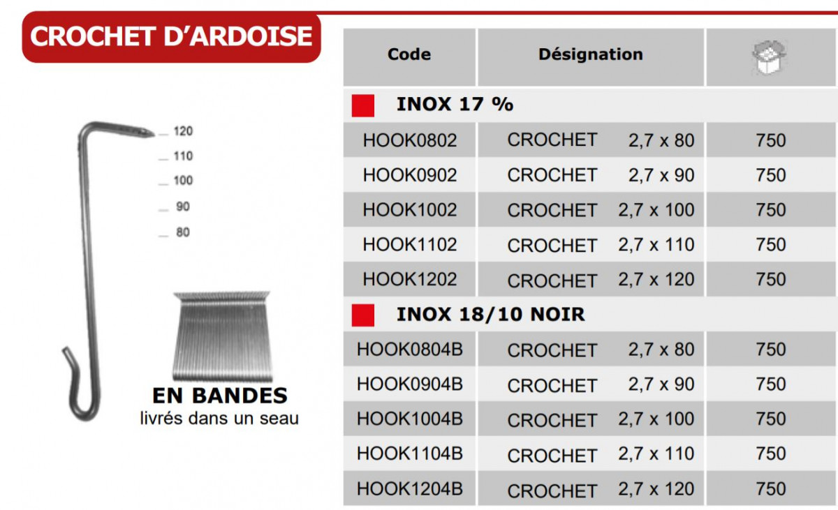 Accueil >> Agrafage >> Agrafes par boites >> Agrafes crochet d'ardoise