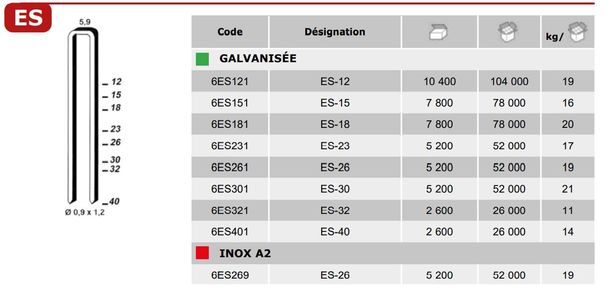 Accueil >> Agrafage >> Agrafes par boites >> Agrafes ES