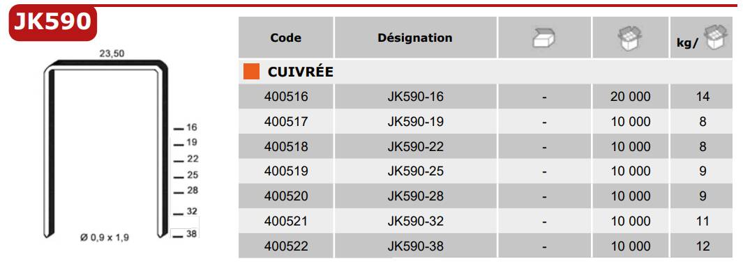 Accueil >> Agrafage >> Agrafes par boites >> Agrafes JK 590