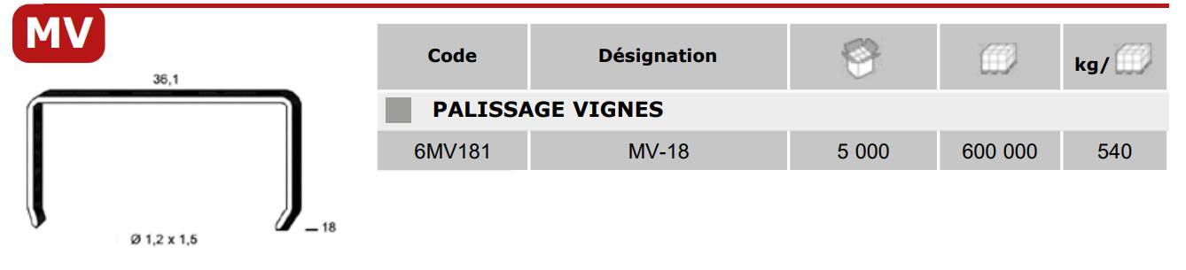 Les agrafes MV sont conçues spécifiquement pour assurer une fixation fiable, durable et adaptée aux exigences du palissage de vignes. Idéales pour les professionnels viticoles comme pour les particuliers, elles facilitent la pose rapide et précise des fils de palissage, garantissant un maintien optimal des plants tout au long de la saison.