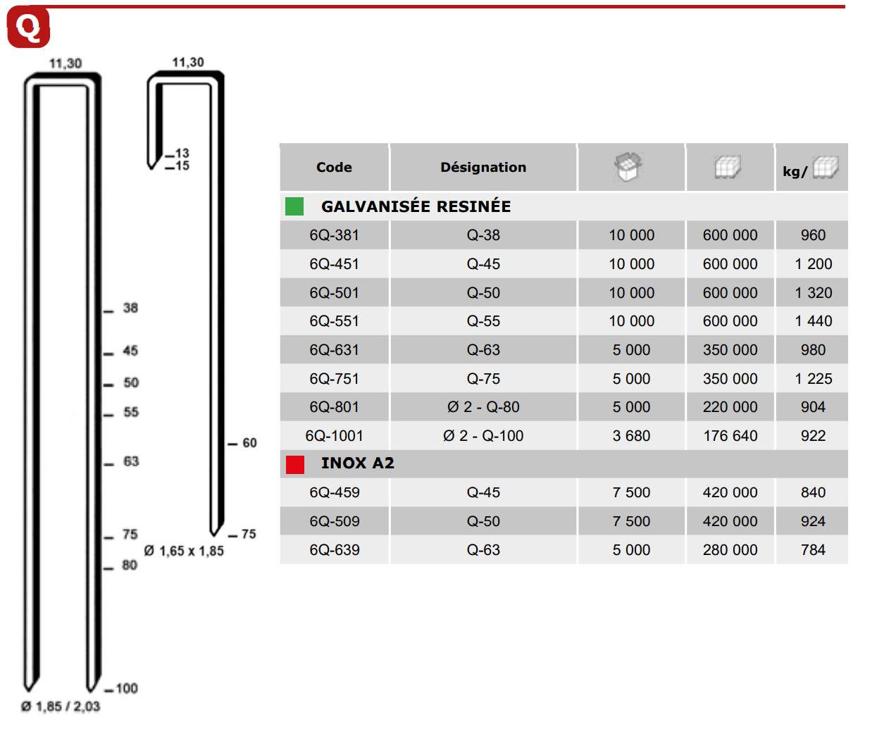 • Type d’agrafes : Q