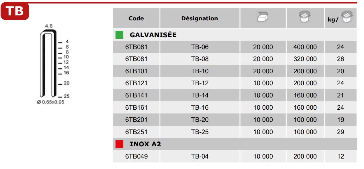 Agrafes TB acier galvanisé – Fixation fiable et polyvalente pour lattes, réparations et confection