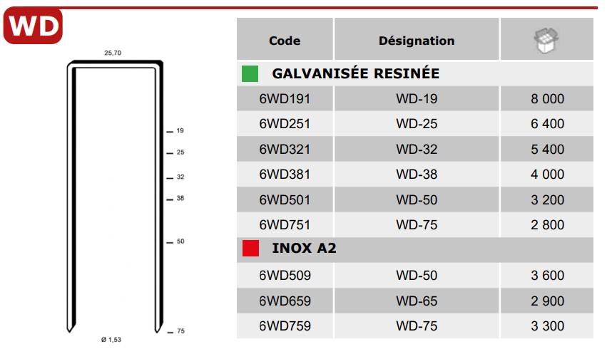 Accueil >> Agrafage >> Agrafes par boites >> Agrafes WD