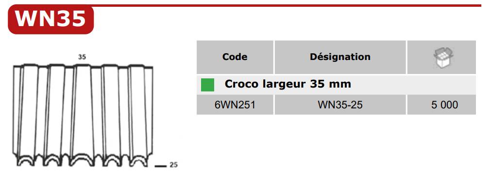 Agrafes WN 35 -  Fiche technique