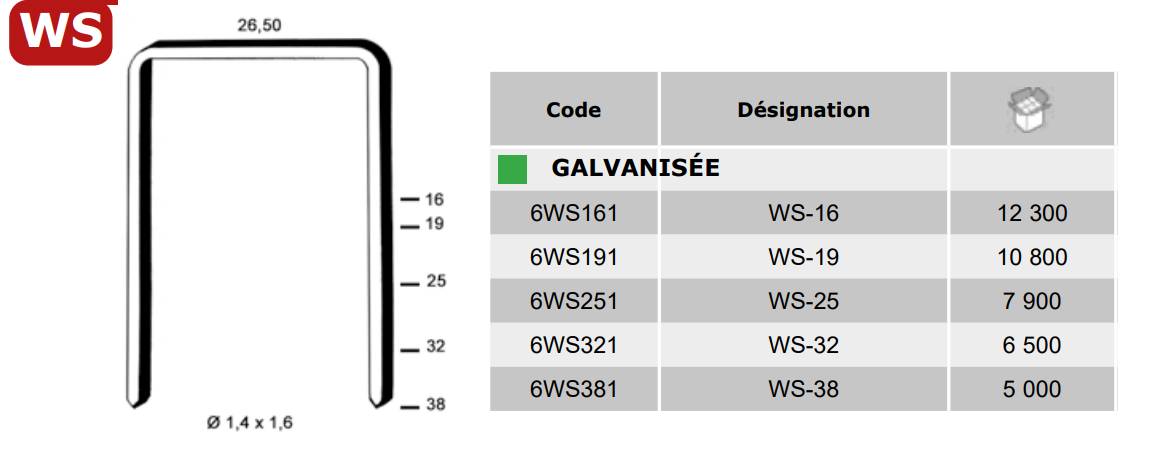 Accueil >> Agrafage >> Agrafes par boites >> Agrafes WS