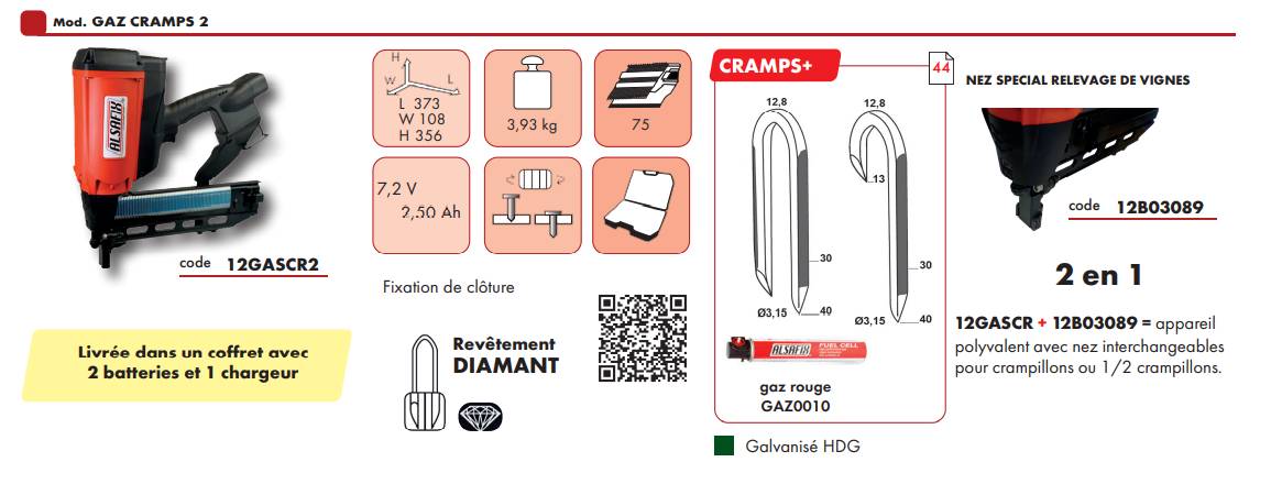 Agrafeuse à gaz ALSAFIX GAZ CRAMPS 2 pour CRAMPS+ de 30 à 40mm