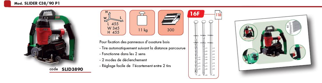 Agrafeuse automatique SLIDER C38/90 P1 pour pointes 16F de 45 à 90mm