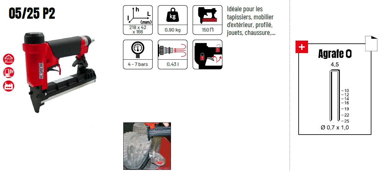 Agrafeuse pneumatique 05/25 P2, précision et confort pour fixations polyvalentes