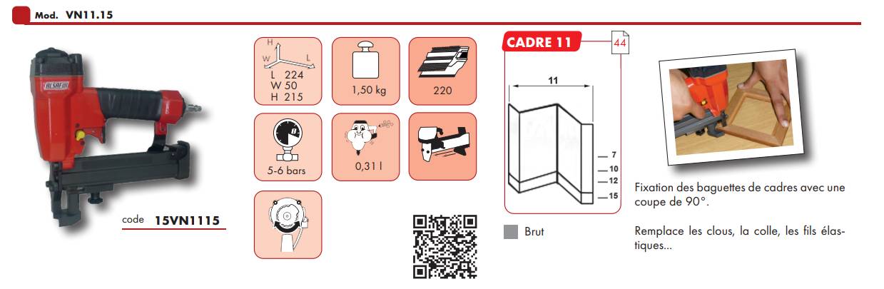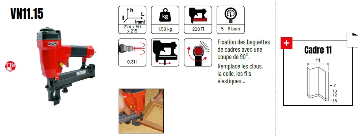 Agrafeuse pneumatique de cadre ALSAFIX VN11.15 pour agrafes CADRE 11 de 7 à 15mm