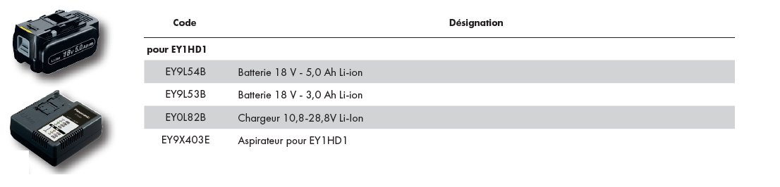 Batterie et chargeur 18V - 5,0 Ah Li-ion pour marteau perforateur EY78A1LJ2G