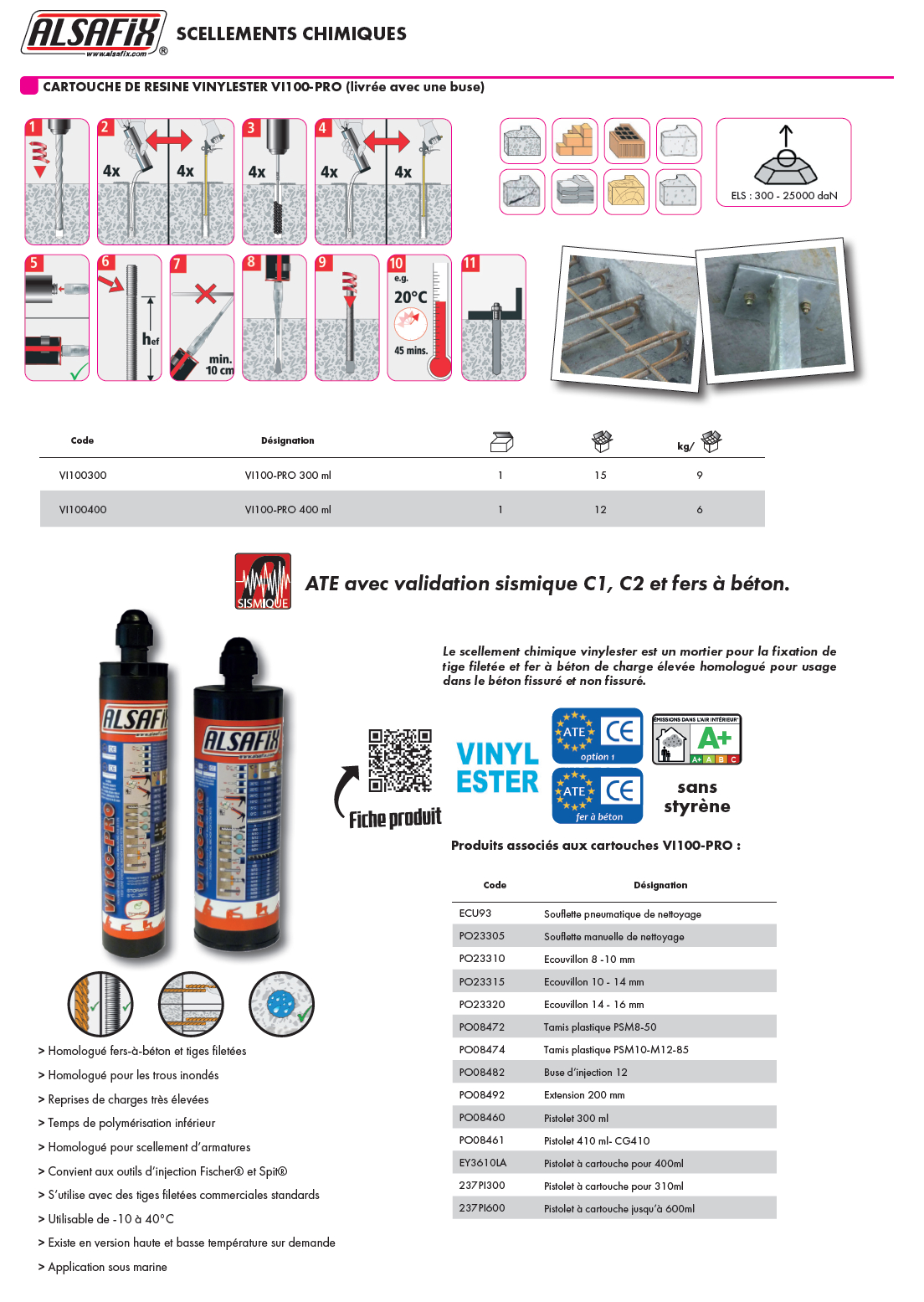 Cartouches de résine VINYLESTER VI100-PRO - Fiche technique