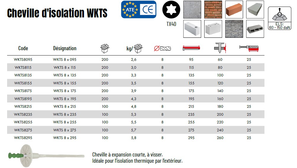 Cheville d'isolation WKTS multi matériaux à expansion courte