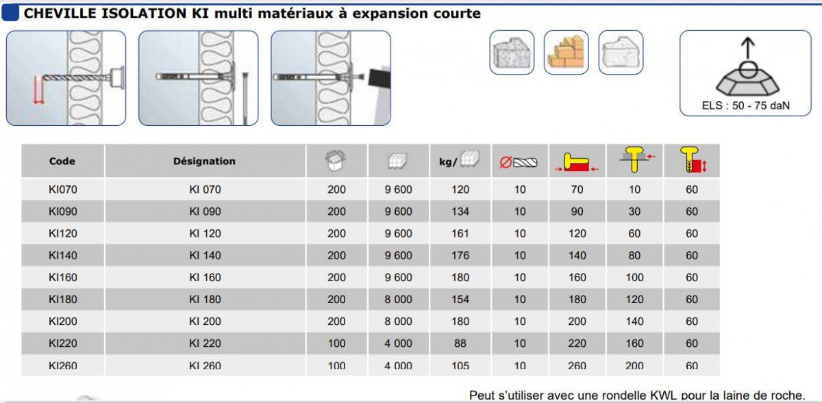 Application : Peut s’utiliser avec une rondelle KWL pour la laine de roche.