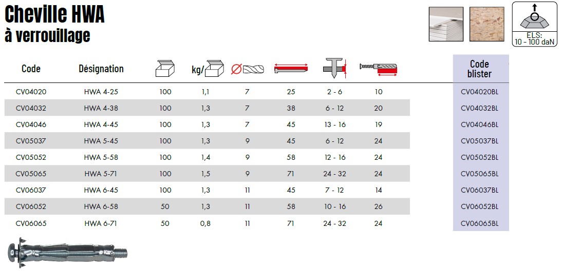 Chevilles à verrouillage HWA 6-37 - Blister || Qté : 1 chevilles