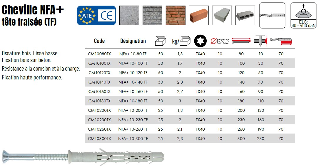 Avis sur "Chevilles NFA+ - Tête fraisée (TF)"