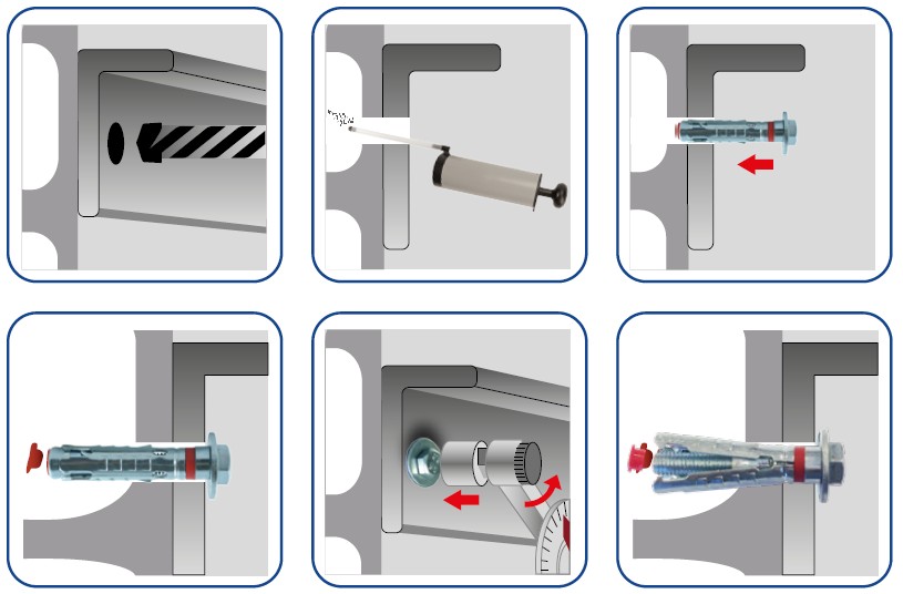 Application : Chevilles à hautes charges d’ancrage dans les matériaux creux tels que les hourdis, briques creuses, parpaings, silico-calcaire et béton C12/15.