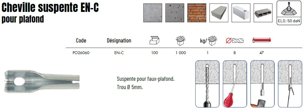 Chevilles suspente EN-C pour plafond