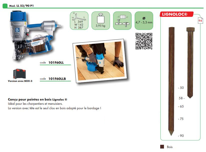 Cloueur LIGNOLOC (Bois) LL 53/90 P1 pour pointes de 58 à 90mm