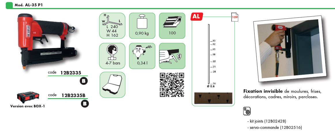 Cloueur pneumatique ALSAFIX AL-35 P1 pour pointes AL de 10 à 35mm