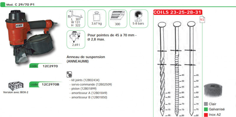 CLOUEUR C 29/70 P1 Coils 23-25-28 de 45 à 70 mm