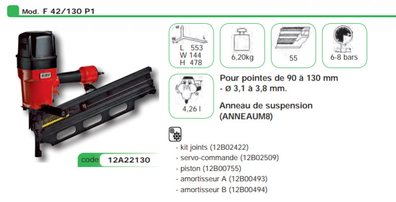 CLOUEUR F 42/130 P1 Pointes 20° de 90 à 130 mm