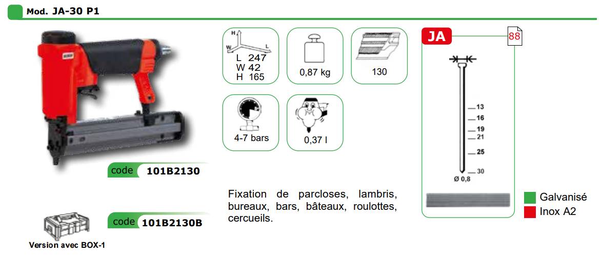 Cloueur pneumatique ALSAFIX JA-30 P1 pour pointes JA de 13 à 30mm