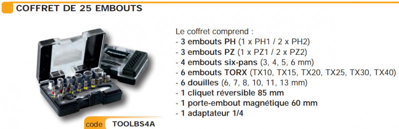- 3 embouts PZ (1 x PZ1 / 2 x PZ2)