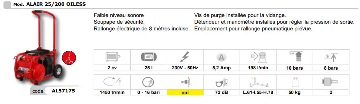 Avis sur "Compresseur électrique monophasé ALAIR 25/200 OILESS"