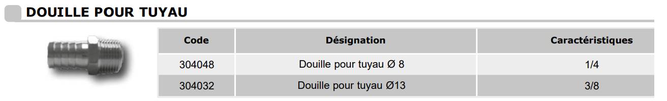 Douilles pour tuyau - Fiche technique