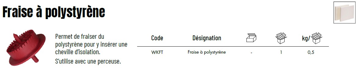 Permet de fraiser du polystyrène pour y insérer une cheville d’isolation.