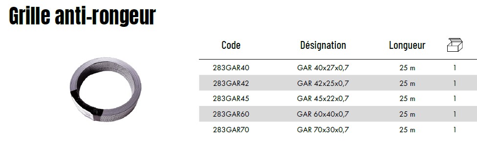 Application : Grille Anti-Rongeur GAR en rouleaux