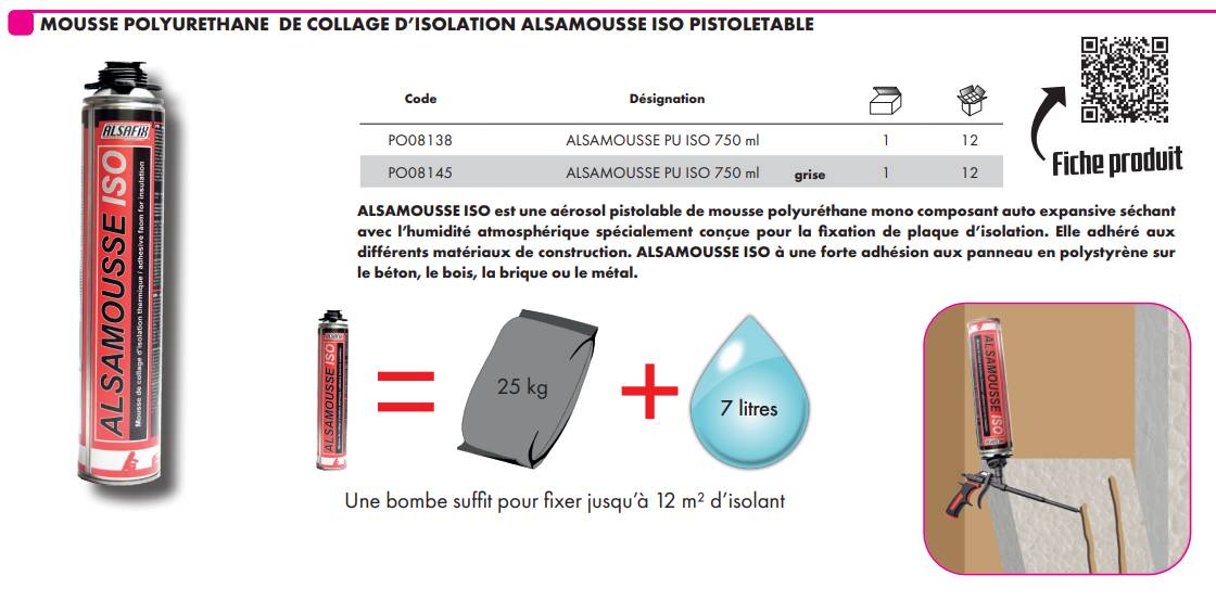 Mousse PU de collage d'isolation ALSAMOUSSE ISO pistolable -  Fiche technique