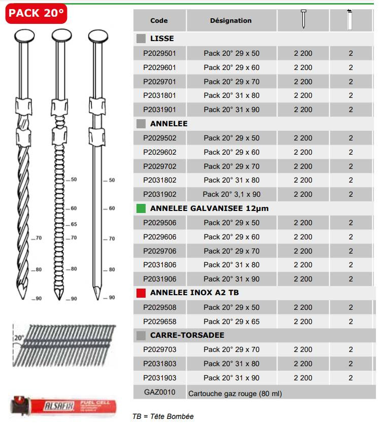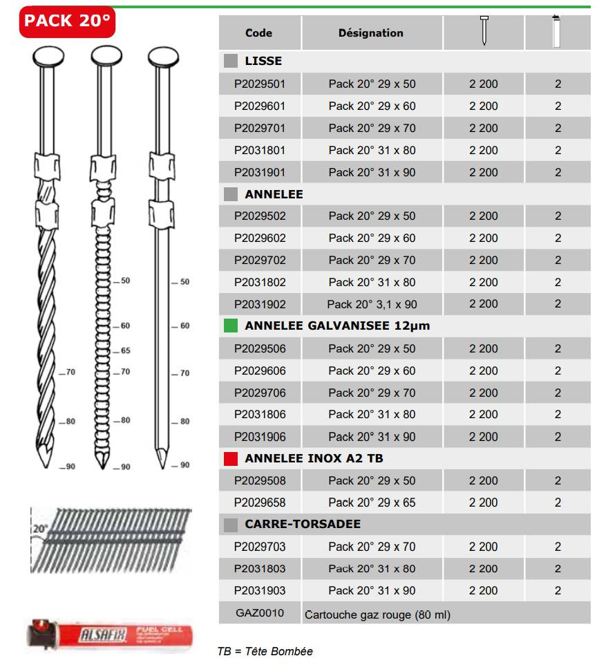 - Type : Pointes en bandes 20° + cartouches de gaz rouge
