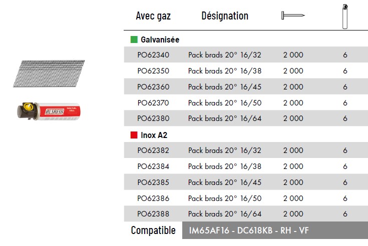 Avis sur "Pack pointes Série brads 20° avec gaz"