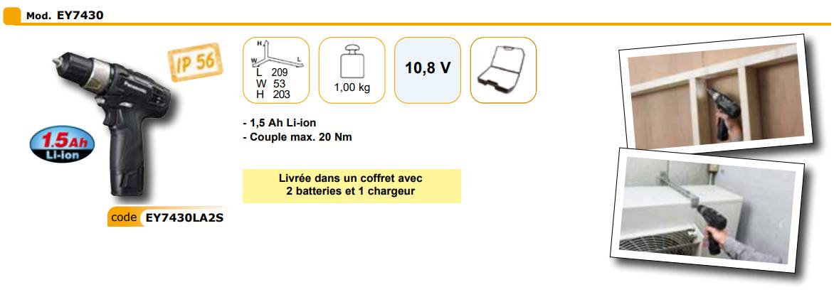Avis sur "Perceuse-visseuse sans fil Li-ion 10,8 V - 1,5 Ah EY7430"