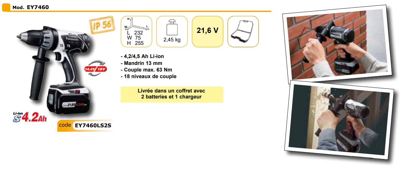 Avis sur "Perceuse-visseuse sans fil Li-ion 21,6 V - 4,2 Ah EY7460"