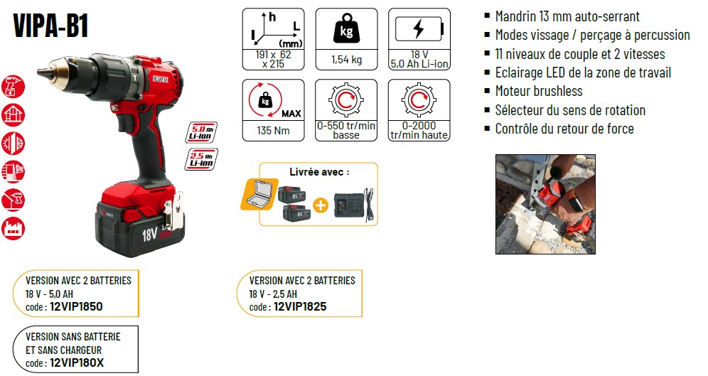Perceuse-visseuse à percussion sans-fil VIPA-B1