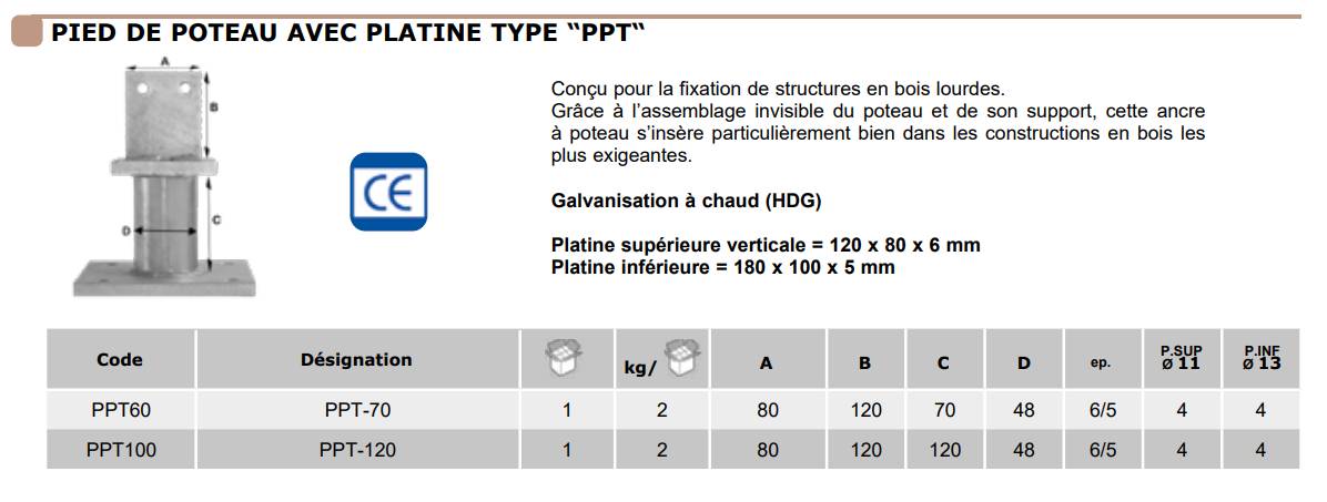 Platine supérieure verticale = 120 x 80 x 6 mm