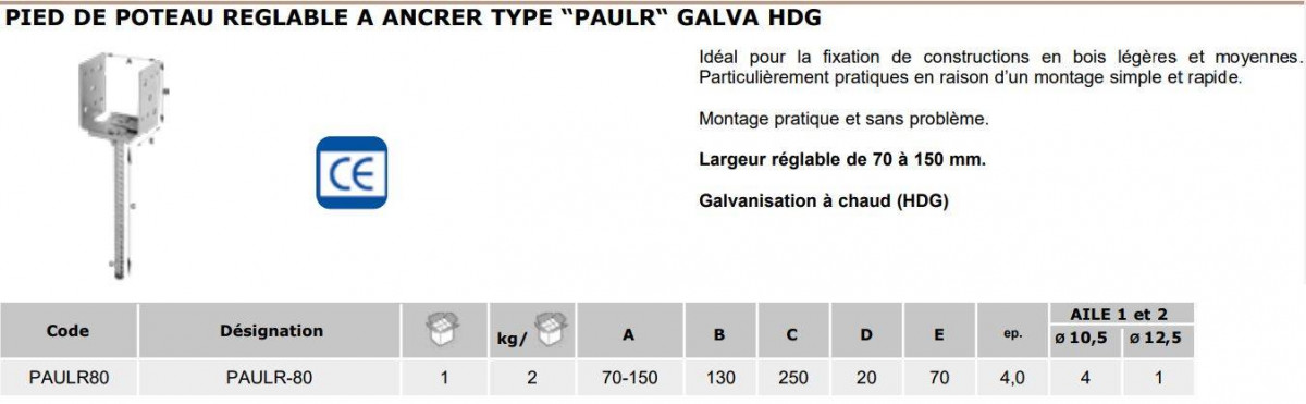 Avis sur "Pieds de poteau réglable à ancrer type PAULR"