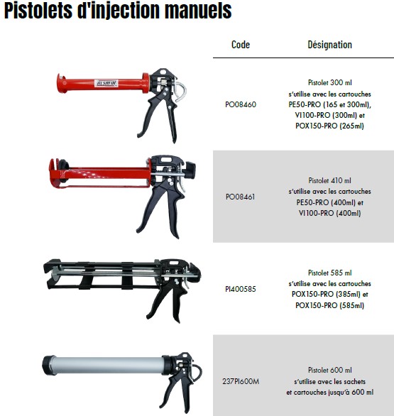 Pistolets d’injection manuels pour scellement chimique