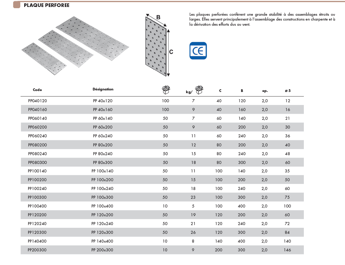 Plaque perfo. 120x300x2,0 || Qté : 1 connecteur