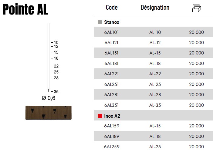 - Type de pointe : AL (finettes sans tête)