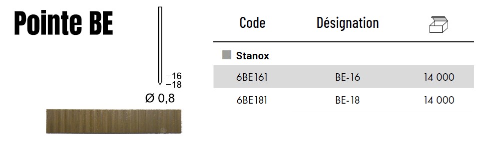 Les pointes BE sont spécialement conçues pour les travaux de finition nécessitant discrétion et solidité. Leur petite tête de type « tête homme » se fond parfaitement dans le matériau, garantissant un rendu soigné et quasiment invisible.