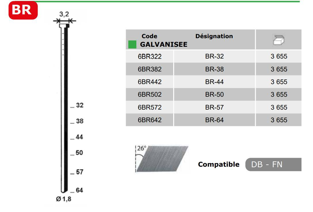 Accueil >> Pointes & Clous >> Pointes finettes - Minibrads - Brads >> Pointes BR 26°