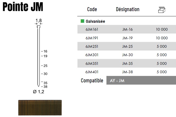 - Type de pointe : JM (tête homme)