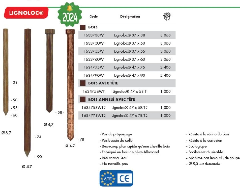 Pointes LIGNOLOC bois en rouleaux -  Fiche technique