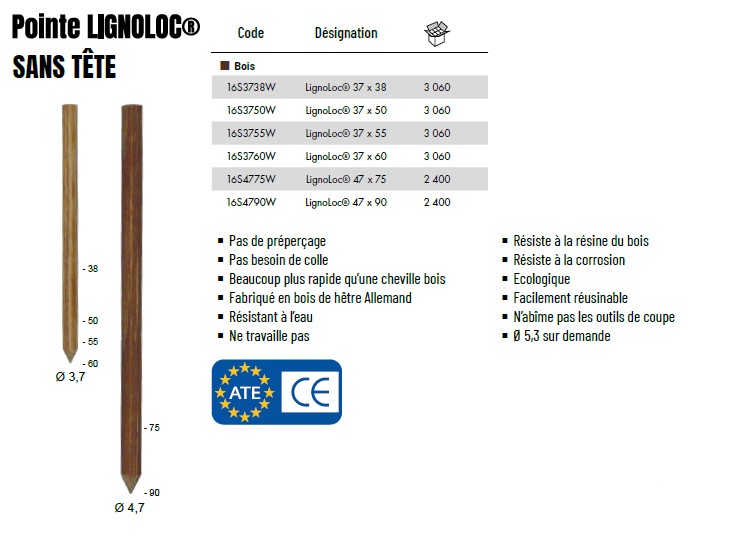 Grâce à leur conception bois sur bois, les pointes LIGNOLOC® éliminent tout risque de corrosion et de pont thermique. Elles ne travaillent pas dans le temps, offrent une excellente résistance à l’eau et présentent une meilleure tenue au feu que les pointes métalliques. Leur mise en œuvre est rapide et efficace, bien plus performante qu’une cheville bois traditionnelle.
