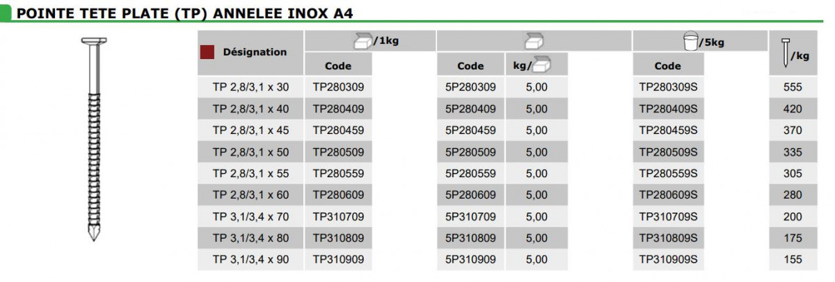 Avis sur "Pointes TP - Annelées inox A4"
